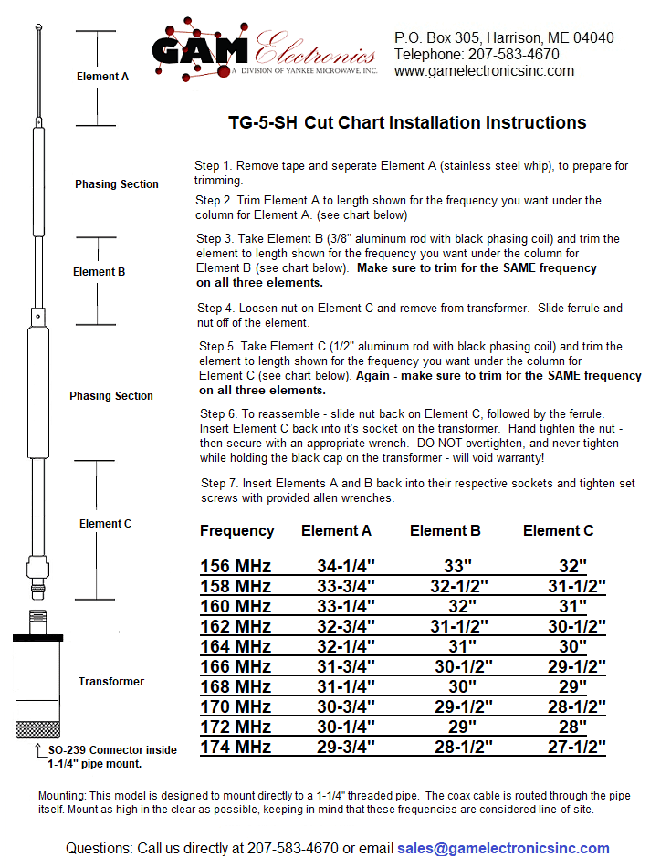 For an uncut 156-174 MHz antenna, please choose “Uncut 156-174 MHZ” from the dropdown menu and see the cut chart here, or choose a pre-cut option.